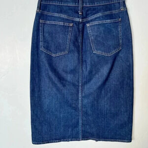 J. Crew Indigo Blue Denim Skirt in a size 28. In excellent “like new” condition. Approximate measurements taken with the garment laying flat Waist 14.5" Outseam 28" Front Slit Opening 10".