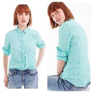J Crew Irish Linen Baird McNutt Striped Button Down Shirt Sz 00