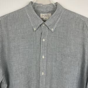 J Crew Irish Linen Shirt Men's XL Gray Micro Houndstooth Casual Business Vintage