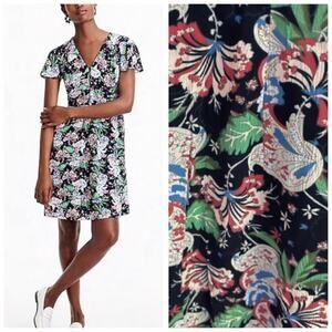 J.Crew Island Floral V Neck Casual Mini Dress Black Multicolor Womens