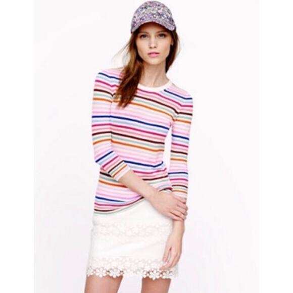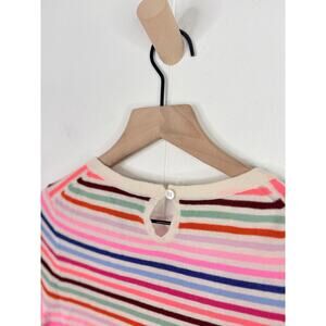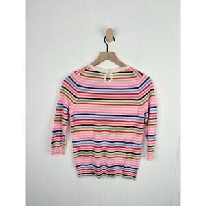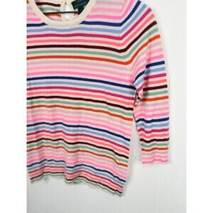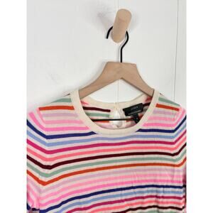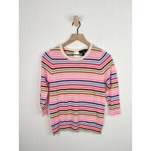 J. Crew Italian Cashmere Stripe Sweater Size Medium Pink Crewneck 3/4 Sleeve