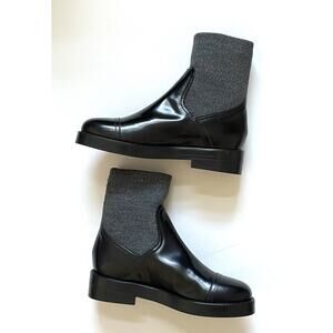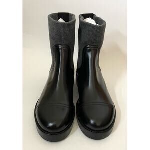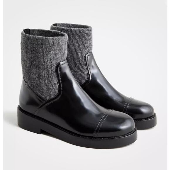 J. Crew Italian Leather Rib Cut Off Boots Black Size 8 NEW