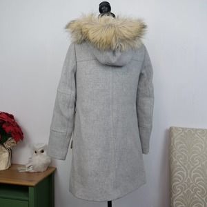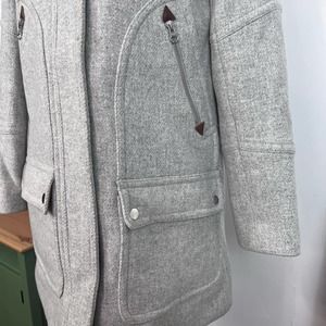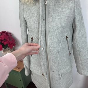 J. Crew Italian Stadium Cloth Wool Coat Size 0 Chateau Parka Removable Fur Hood