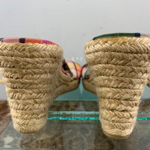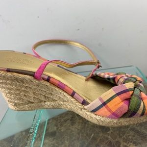 J Crew Italy Plaid Slingback Open Toe Wedge Heel 8
