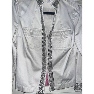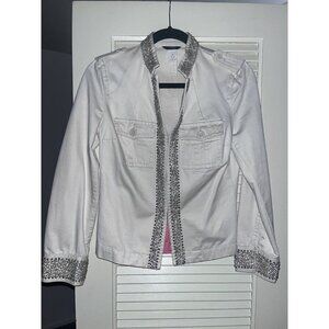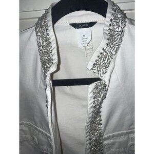 J. Crew Ivory Cotton Stretch Rhinestone Filled Jacket Size S Petite