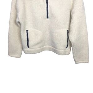 J Crew Ivory Crop Half Zip Polartec Fleece Pullover Sweater