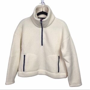 J Crew Ivory Crop Half Zip Polartec Fleece Pullover Sweater NWT Small