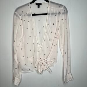 J. Crew Ivory Dot Sheer Silk Long Sleeve Wrap Top Size L