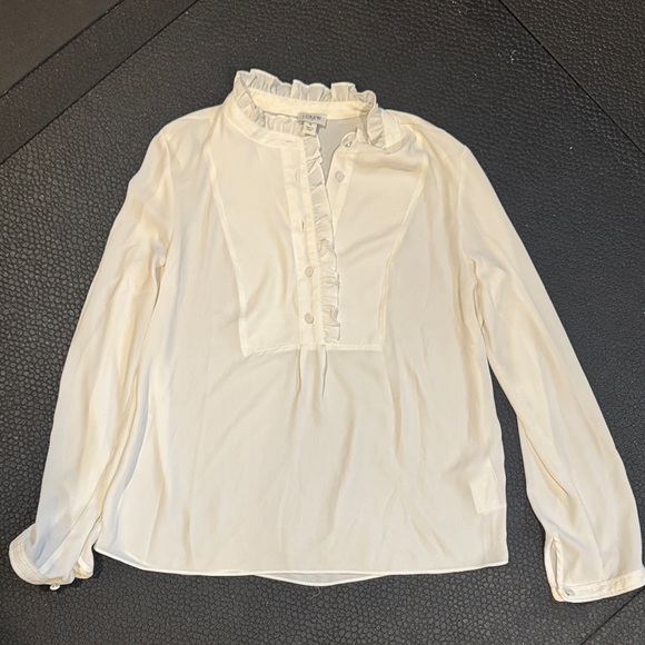 Chic ivory top with delicate ruffles. Ideal for versatile styling.