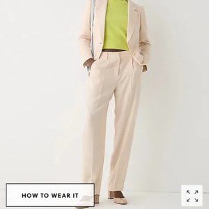 These cream trousers from J. Crew feature a high-waisted, tailored fit with a straight leg cut, offering a timeless and versatile style for professional settings. Inseam approx 30”