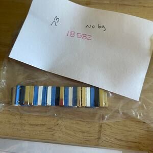 J. Crew J Crew bracelet costume signed jewelry gold tone white and blue about 6.5” unstretched and about ¾” wide classic preppy.