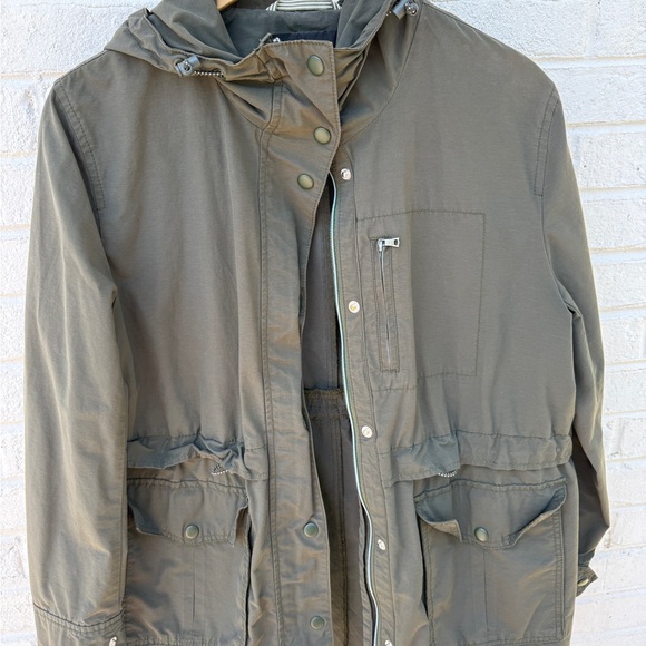 Stay stylish and comfortable with this olive hooded jacket. Perfect for any casual outing.