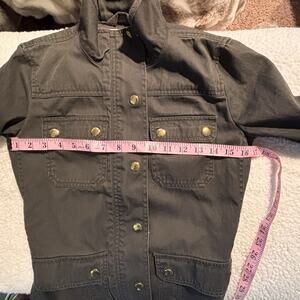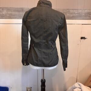 J Crew Jacket Women XS Green Full Zip Cargo Pocket Field Coated Utility