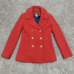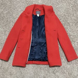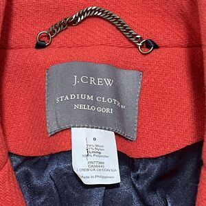 J Crew Jacket Womens Size 0 Coral Red Wool Peacoat Stadium Cloth Nello Gori