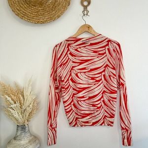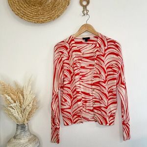 J. Crew Jackie Cardigan Wool Palm Leaf Orange White Gold Print Size Medium