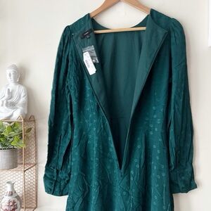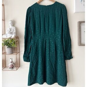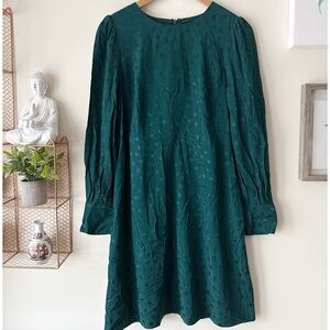 J. Crew Jacquard Floral Dot Shift Dress in Dark Spruce Green Size 6 NEW - Item AR644 - 100% Viscose - Back zip - wide cuffs with covered buttons.