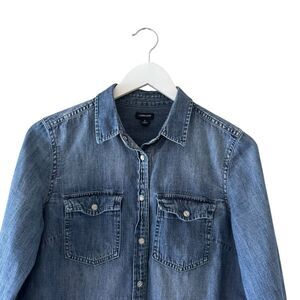 J Crew Jeans Chambray Button Up Shirt Womens Pearl Snap Buttons Long Sleeve Sz 6/ S #2509