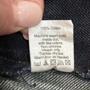 Rigid denim. 5 pocket styling. Zip fly and button close.