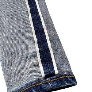 Condition: Very good pre-owned | No rips, tears, fraying, or stains to note. | See red framed images to see a couple of small spots of lightening of the denim on back left | Some wear of the leather patch on back waistband - including color transfer from belt