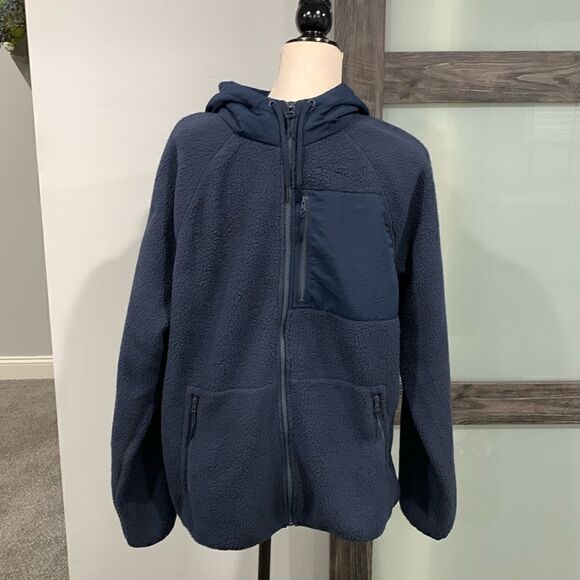 J. Crew Jeans navy blue zip front Sherpa fleece hooded jacket size L NWT