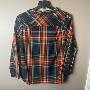 J Crew Jewel Button Tartan Plaid Funnel Top K6797 - Sz 4P
