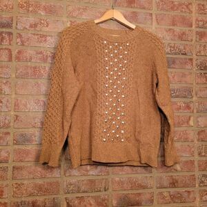 J. Crew Jewel Embellished Honeycomb Cable Wool Long Sleeve Sweater Size small