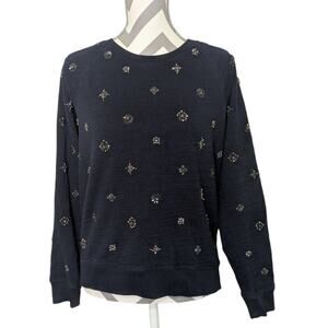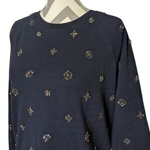 J. Crew Jeweled Embellished Navy Blue Pullover Sweatshirt Sweater Size Large