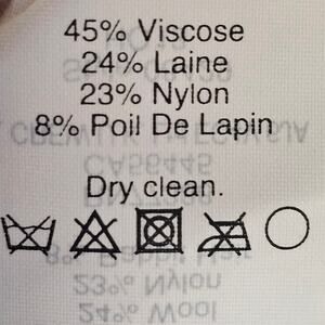 Material: 45% Viscose, 24% Wool, 23% Nylon, 8% Rabbit Hair