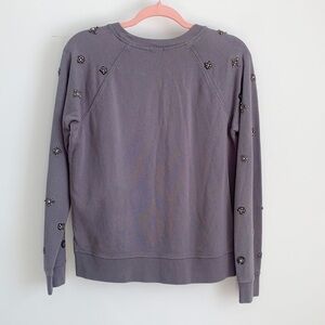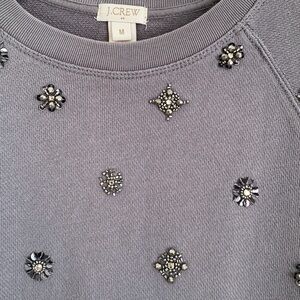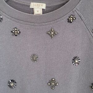 J. Crew Jeweled Sweatshirt. Great condition just a little wrinkled from being folded in a tote during a move. Size medium, but fits like a small, so listing according to actual fit. So cute as a layering piece! Color looks distorted from my iPhone camera. There’s nothing wrong with it, it’s solid gray.