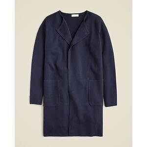 J. Crew Juliette Collarless Sweater Blazer Black. Our new favorite multitasking layer: This features a midlength cut (so yes, it covers your bum), patch front pockets, an open cascading front and cozy knit fabric that toes the line between a cardigan and a jacket. Indoors or outdoors, we bet you won't want to take this one off.