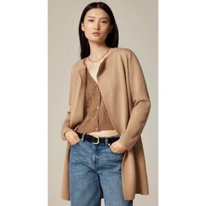 J Crew Juliette Collarless Sweater Blazer •XL•Jacket Cardigan Khaki J6339 Camel