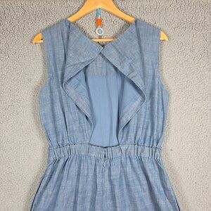 J Crew Jumpsuit Size 8 Chambray Wide Leg Cropped Open Back Chic Minimalist Loose