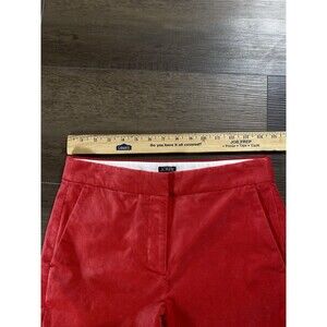 The J. Crew Kate Straight Leg Stretch Velvet Holiday Pant in women's size 2 is a stylish and festive addition to your holiday wardrobe. Made from a comfortable cotton blend with a velvet fabric, these red pants feature a solid pattern, zip closure, and a mid-rise fit for a flattering silhouette. The straight leg design and stretch feature make them perfect for the winter, fall, or spring seasons, adding a touch of elegance to any outfit. Perfect for a holiday party or a special occasion, these pants from J. Crew are sure to make a statement.