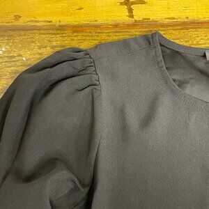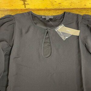 J. Crew Keyhole Puff Sleeve Drapey Crepe Blouse Black Sz LG TALL