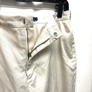 These J Crew stone chino pants have cuffed and straight legs, with a high waist. They are a woman's size 10.