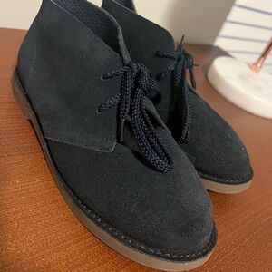 Elegant black suede chukka boots by J. Crew. Perfect for versatile styling. Leather on top. No flaws.