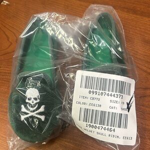 J Crew Kids' embroidered-skull velvet slip-on shoes CB772