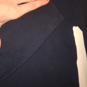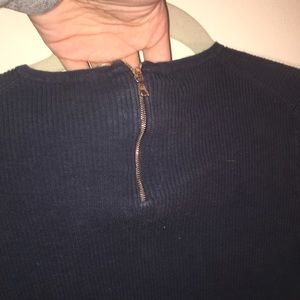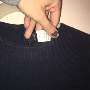 Good condition navy blue knitted long sleeve shirt with zip up the back of the neck. Tag says size small true to J. Crew size small.