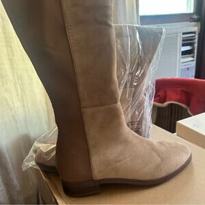 J. Crew Knee-high Boots With Stretch Suede Camel Two Tone Tan Beige NEW Size 6.5