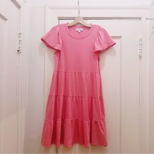 J. Crew Knit Broken-In Jersey Tiered Mini Dress Pink Short Sleeves Summer