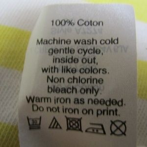 Yellow and white crew neck knit top with 3/4 length sleeves.