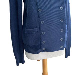 J. Crew Knit Shawl Collar Double Breasted Button Down Academia Nautical Grandpa Cardigan Sweater. Please note there is some silver showing on the outer edges of many of the buttons