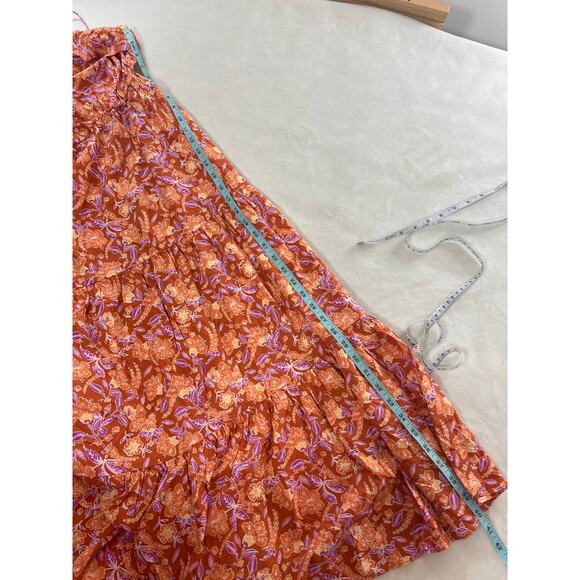 J. Crew L Tiered Maxi Dress Orange Floral Print Sleeveless Ruffle Wedding Guest