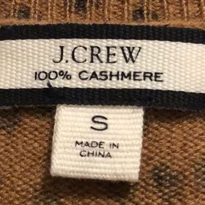 J. Crew LAYLA Camel Tan Black Dot Animal Print 100% Cashmere Crew Neck Sweater