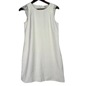 J. Crew Lace Cap Sleeve Knee Length Shift Dress Pockets Back Zip Lined 4 Ivory