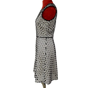 J Crew Lace Overlay Dress - a casual daytime style perfect for wedding, church, garden party - in Size 2 - cotton with embroidery - fully lined. Back zipper and basic sheath style fit - beige/white with black overlay - silk trim finishes. If you add one dress to your warm weather collection - this should be it! Gently worn - no flaws - a timeless classic look!