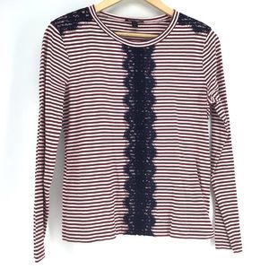 J.Crew Lace Red Long Sleeve Striped T-Shirt Top