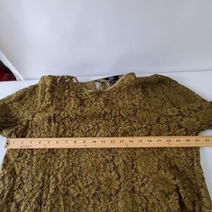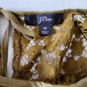 J. Crew Lace Top with Cami Size 18 Fringe Trim Long Sleeve Green Blouse. Color is a mossy green.