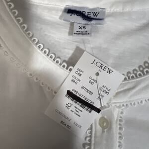 J. Crew Lace Trim Short Sleeve Top Women’s White Half Button Blouse Size XS
