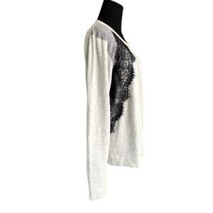 Very soft and comfy long sleeve gray sweater with lace embellishments that make it special.